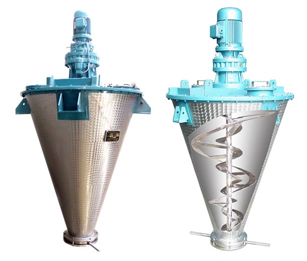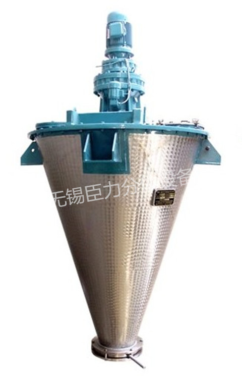 DSH系列混合機筒內(nèi)兩只非對稱螺旋自轉(zhuǎn)將 物料向上提升,轉(zhuǎn)臂慢速公轉(zhuǎn)運動;使螺旋外的物料,不同程度進入螺柱,從而達到全圓周方位物料的不斷更新擴散,被提到上部的兩股物料再向中心凹穴匯合,形 成一股向下的物料流,補充了底部的空缺,從而形成對流循環(huán)的三重混合效果?;旌蠙C兩非對稱螺旋的快速自轉(zhuǎn),物料向上提升、形成兩股非對稱沿筒臂由下向上的 螺旋物料流。轉(zhuǎn)臂帶動的螺旋公轉(zhuǎn)運動,使螺旋外的物料不同程度進入螺柱包絡(luò)線內(nèi),一部分物料被錯位提升,另一部分物料被拋出螺柱,從而達到全圓周方位物料 的不斷更新擴散,被提到上部的兩股物料再向中心凹穴匯合,形成一股向下的物料流,補充了底部的空穴,從而形成對流循環(huán)。由于上述運動的復(fù)合,物料在較短時 間內(nèi)獲得了均勻混合,混合程度較高。
